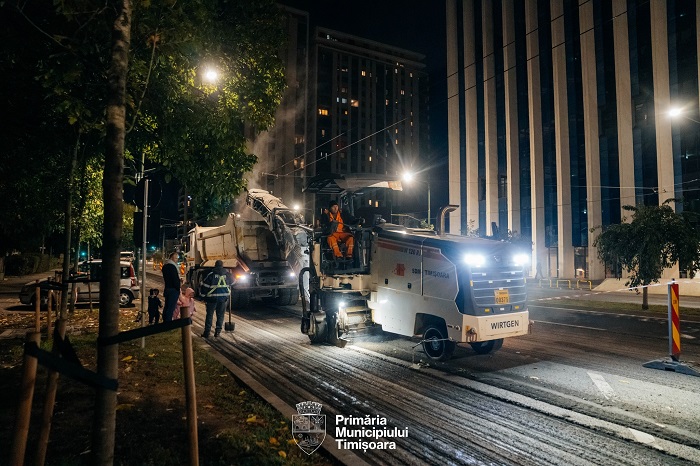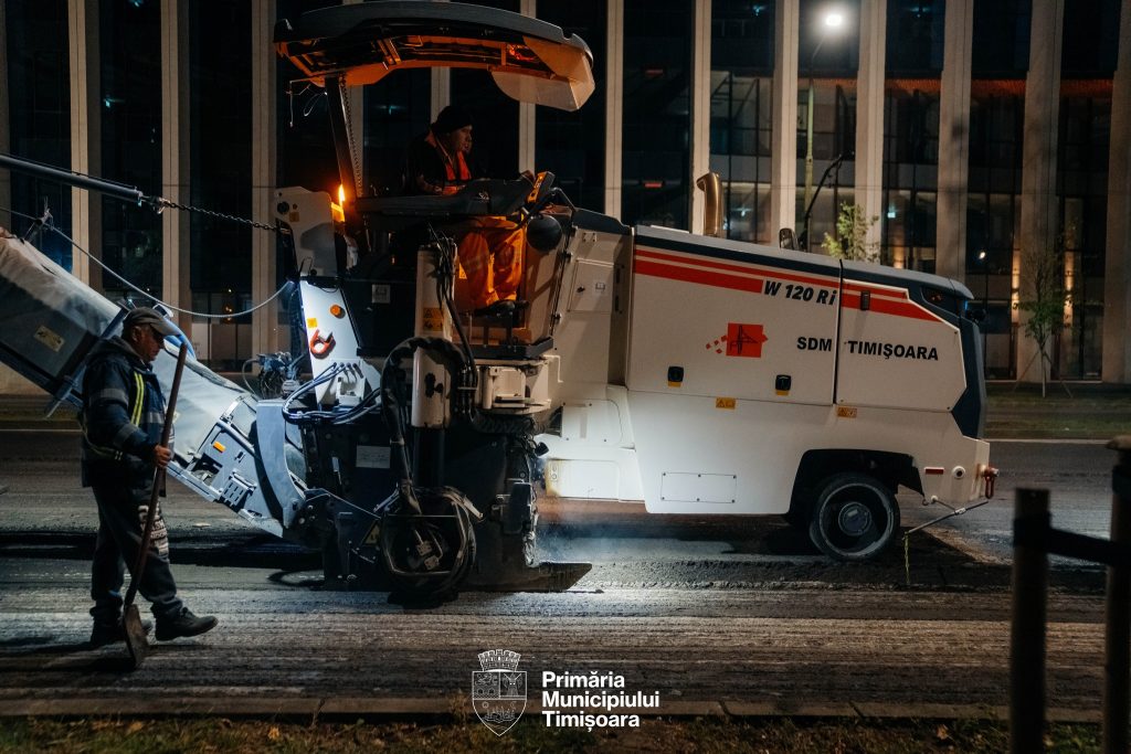 În această noapte, a început amenajarea culoarului verde pentru autobuze pe B-dul Take Ionescu din Timișoara.