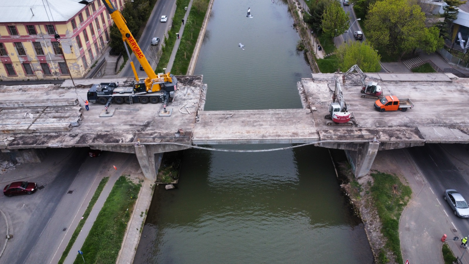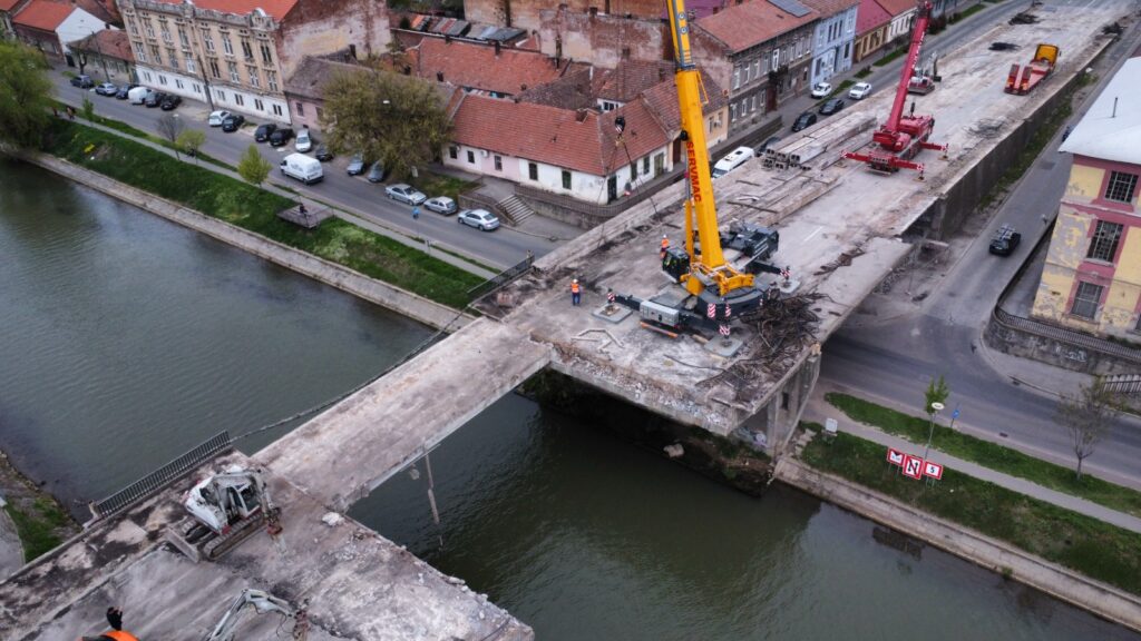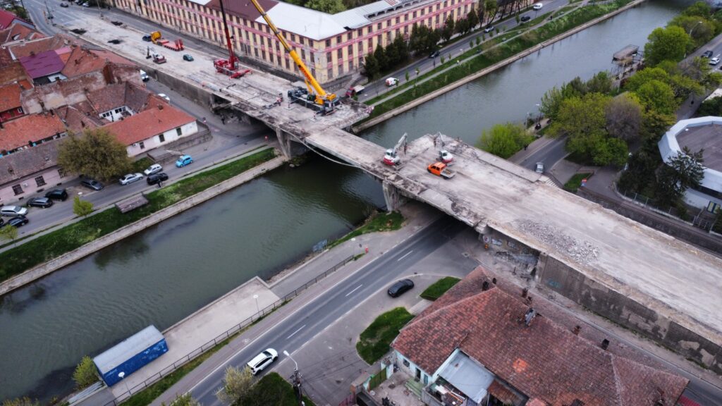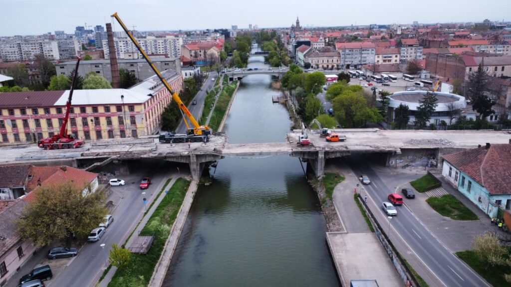 Au avansat lucrările de demolare a Podului Muncii din Timișoara. În aceste zile, tablierul central al podului a fost demontat. Este vorba de una dintre etapele-cheie pentru refacerea și consolidarea structurii.