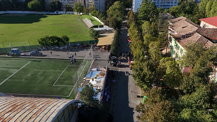Buldozerele Primăriei Timișoara au fost puse din nou la treabă. De data aceasta, instituția sprijină Inspectoratul Școlar Timiș în demersurile de a recupera o bază sportivă pentru copii din cartierul Dacia, unde firma MWT Sport a construit ilegal un bar cu terasă și vestiare.