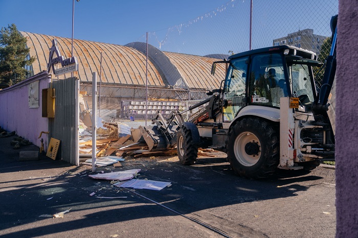 Marți, s-au deplasat la fața locului echipele Colterm, ale Poliției Locale și reprezentanții Primăriei Timișoara și Inspectoratului Școlar Timiș, pentru a pune în aplicare dispoziția de demolare emisă de primarul Dominic Fritz.