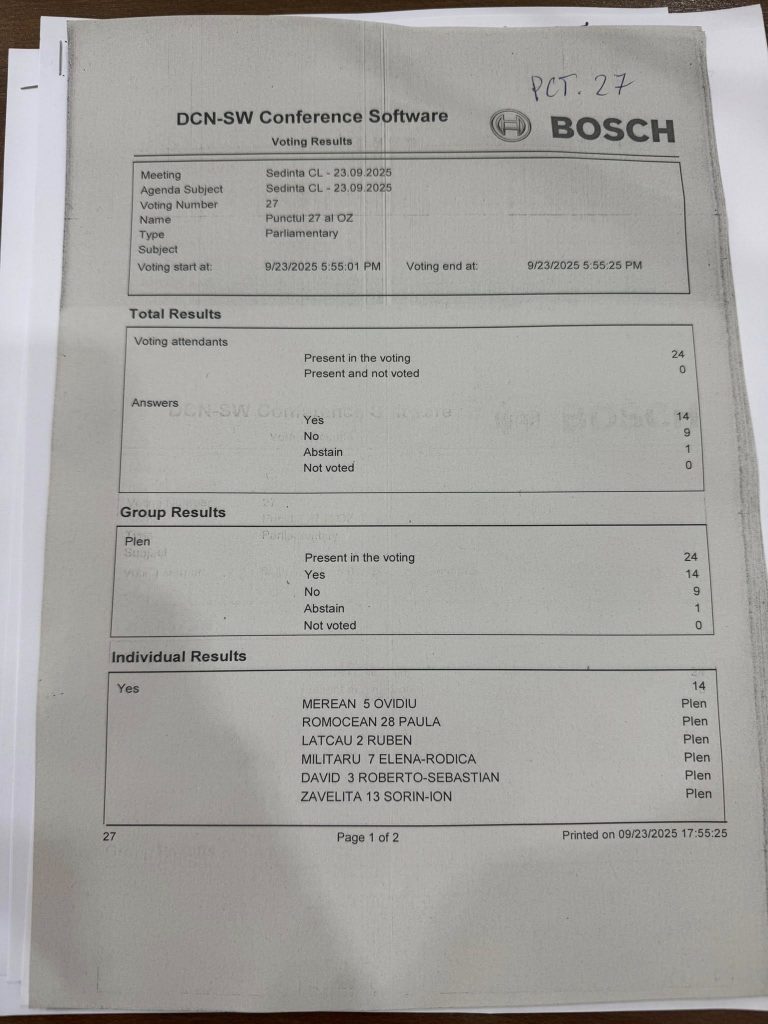 Proiectul a fost aprobat la limită, cu 14 voturi „pentru”. Liberalii și pesediștii s-au opus inițiativei, însă au fost înregistrate 13 voturi „pentru” de la USR, iar unul a venit din partea consilierului local AUR Ștefan Corban.