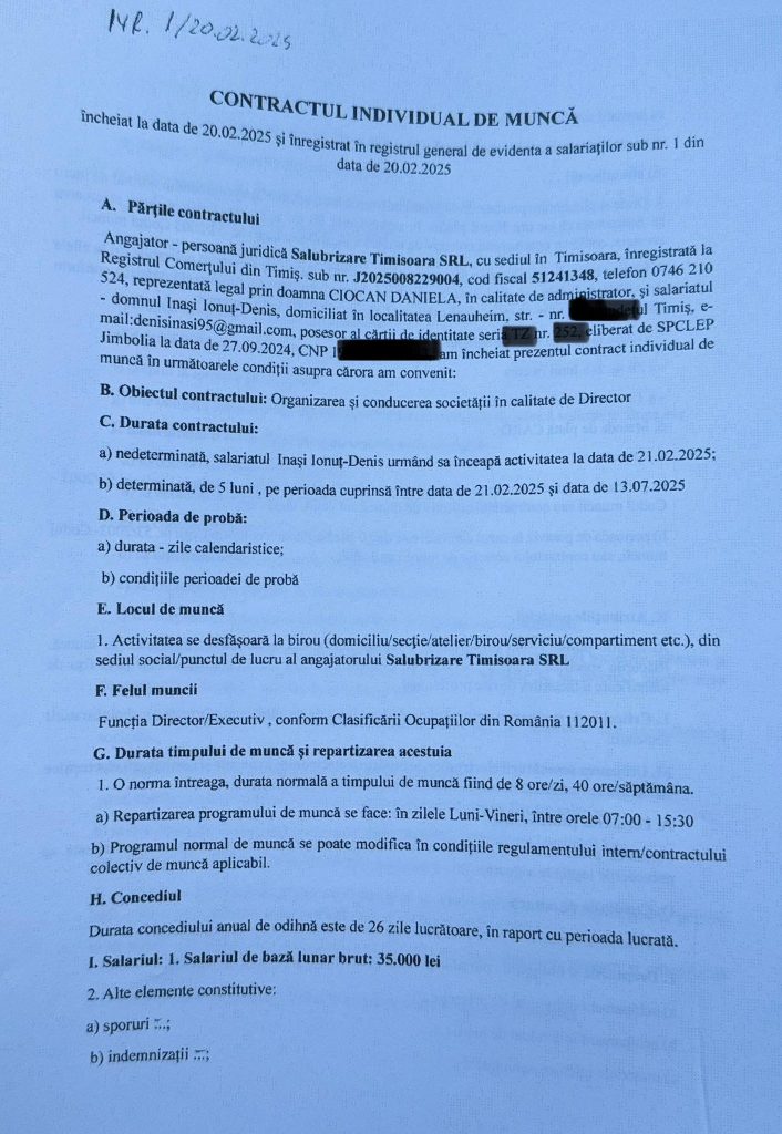 Dacă tot vorbește primarul Fritz de noutăți la SaluT, știți, compania responsabilă de curățenia din oraș, să vă spun și eu una: directorul executiv, domnișorul Ionuț Denis Inasi, conform Contractului individual de muncă nr. 1 din 20.02.2025, document ce ar fi trebuit să fie public pe site-ul societății, dar care încă nu e, are un salariu brut lunar de 35.000 lei. Același director executiv este și membru în Consiliul de Administrație la SaluT, calitate în care mai primește 2.500 lei lunar”, a scris Roxana Iliescu, pe Facebook.