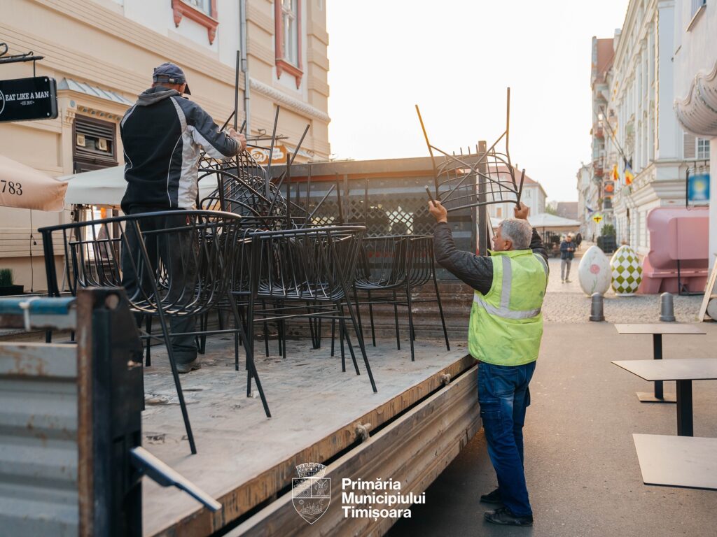 Primăria Timișoara a ridicat, vineri dimineața, încă trei terase ilegale din zona centrală.