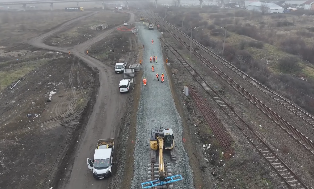 Au avansat lucrările de modernizare a lotului 3 al căii ferate Timișoara Est – Ronaț Triaj. CFR Infrastructură Timișoara anunță că primii 500 metri de linie ferată nouă au fost montați.