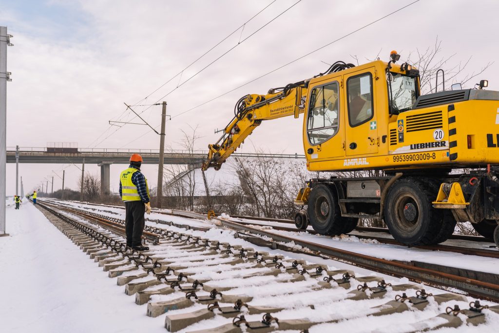 Șinele sunt manipulate mecanizat și așezate cu precizie pe traversele din beton, urmând a fi fixate prin sisteme elastice de prindere, astfel încât să fie respectați parametrii de siguranță și geometria căii ferate. Aceste lucrări sunt premergătoare operațiunilor ulterioare de completare a prismei de balast, buraj tehnologic, realizarea căii fără joantă, stabilizare și reglaj, toate contribuind la creșterea siguranței și a calității circulației feroviare”, a informat instituția.