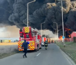 Numeroși pompieri intervin, miercuri dimineață, cu scopul de a stinge un incendiu violent izbucnit...
