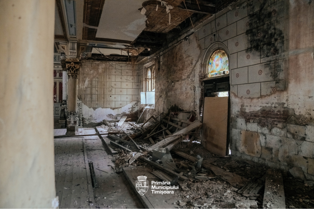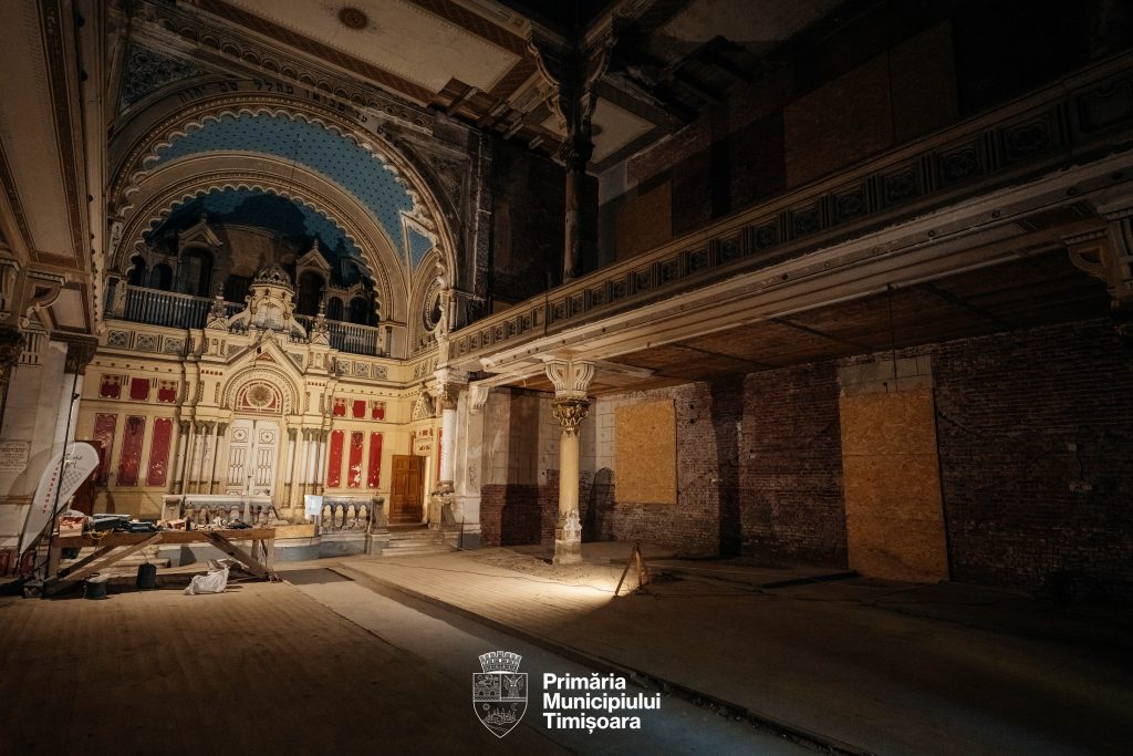 „Construită între 1897 și 1899, Sinagoga nu a mai fost folosită din anii ’80 și s-a degradat considerabil, astfel că intervențiile au vizat oprirea procesului de deteriorare și pregătirea clădirii pentru etapa de reabilitare. Astfel, au fost executate lucrări de reparare a învelitorii acoperișului, pentru a opri infiltrațiile de apă, de consolidare a elementelor cu structură la risc și de îndepărtare a componentelor aflate în pericol de prăbușire. Totodată, vitraliile au fost protejate cu placaj, iar elementele decorative fragile au fost demontate și depozitate în condiții de siguranță”, a transmis Primăria Timișoara.