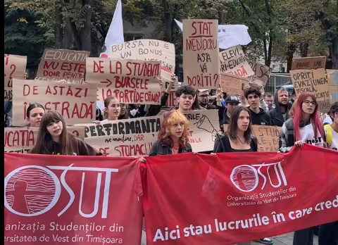Studenții din Timișoara au scandat „Fără burse, fără carte, România merge în spate”, „Nu plecăm, nu cedăm, viitorul îl salvăm”, Jos cu mâna de pe burse, nu tăiați din burse” și au ținut în mâini pancarte cu mesaje precum „Ne-ați promis 6%, dar jucați la derută”, „Opriți evaziunea fiscală, nu educația” sau Educația nu este doar pentru cei cu bani”.