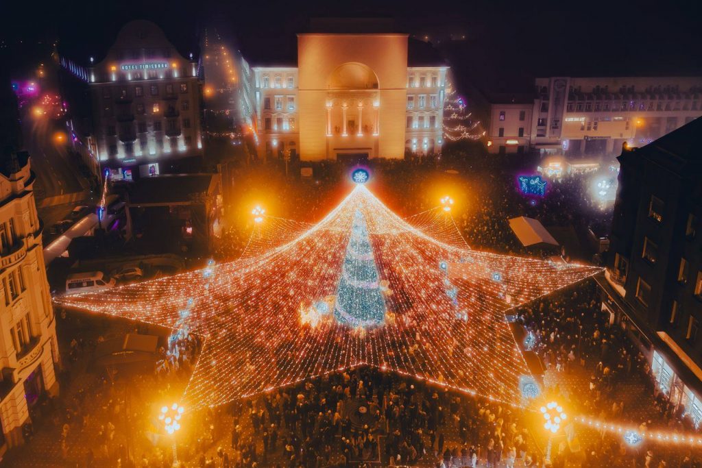 La ora 24.00, timișorenii prezenți în centrul Timișoarei s-au bucurat de un spectaculos foc de artificii.