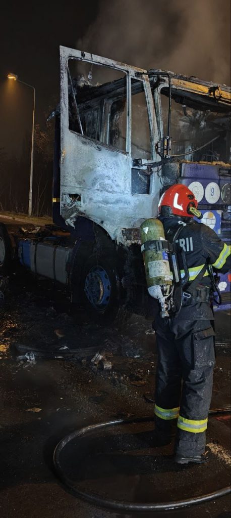 „Vineri, 20.12.2024, în jurul orei 17:35 am fost anunțați despre producerea unui incendiu pe Calea Aradului din Timișoara. La locul evenimentului s-au deplasat patru autospeciale de stingere din cadrul Detașamentului 1 Timișoara. La sosirea la locul evenimentului s-a constatat că incendiul se manifesta cu ardere generalizată la un cap tractor (nu avea remorcă)”, a informat ISU Timiș.