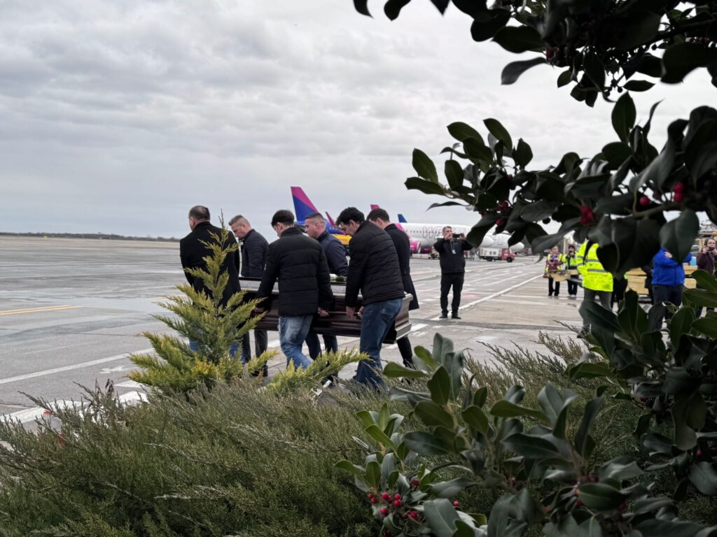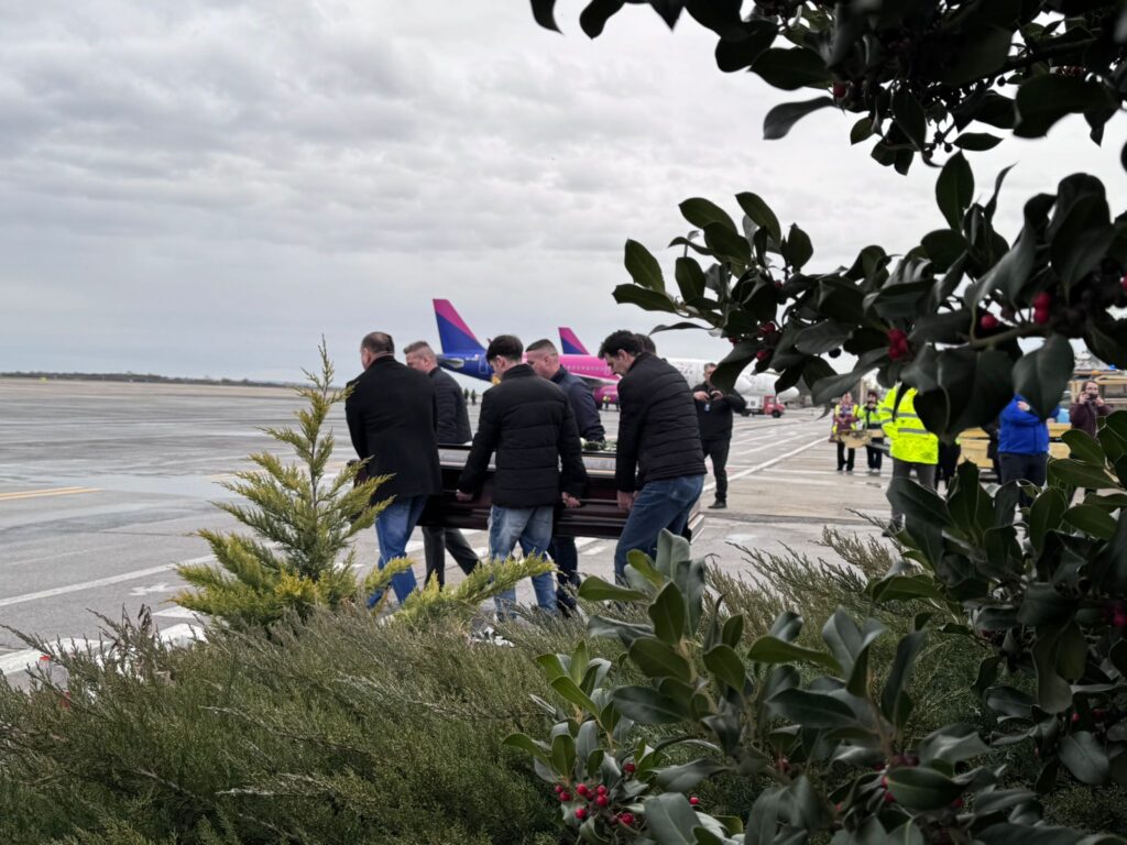 Imagini sfâșietoare la Aeroportul Internațional „Traian Vuia” din Timișoara, joi. Sicriele cu trupurile celor șapte suporteri ai echipei PAOK Salonic, morți în urma accidentului cumplit din județul Timiș, au fost transportate în Grecia.