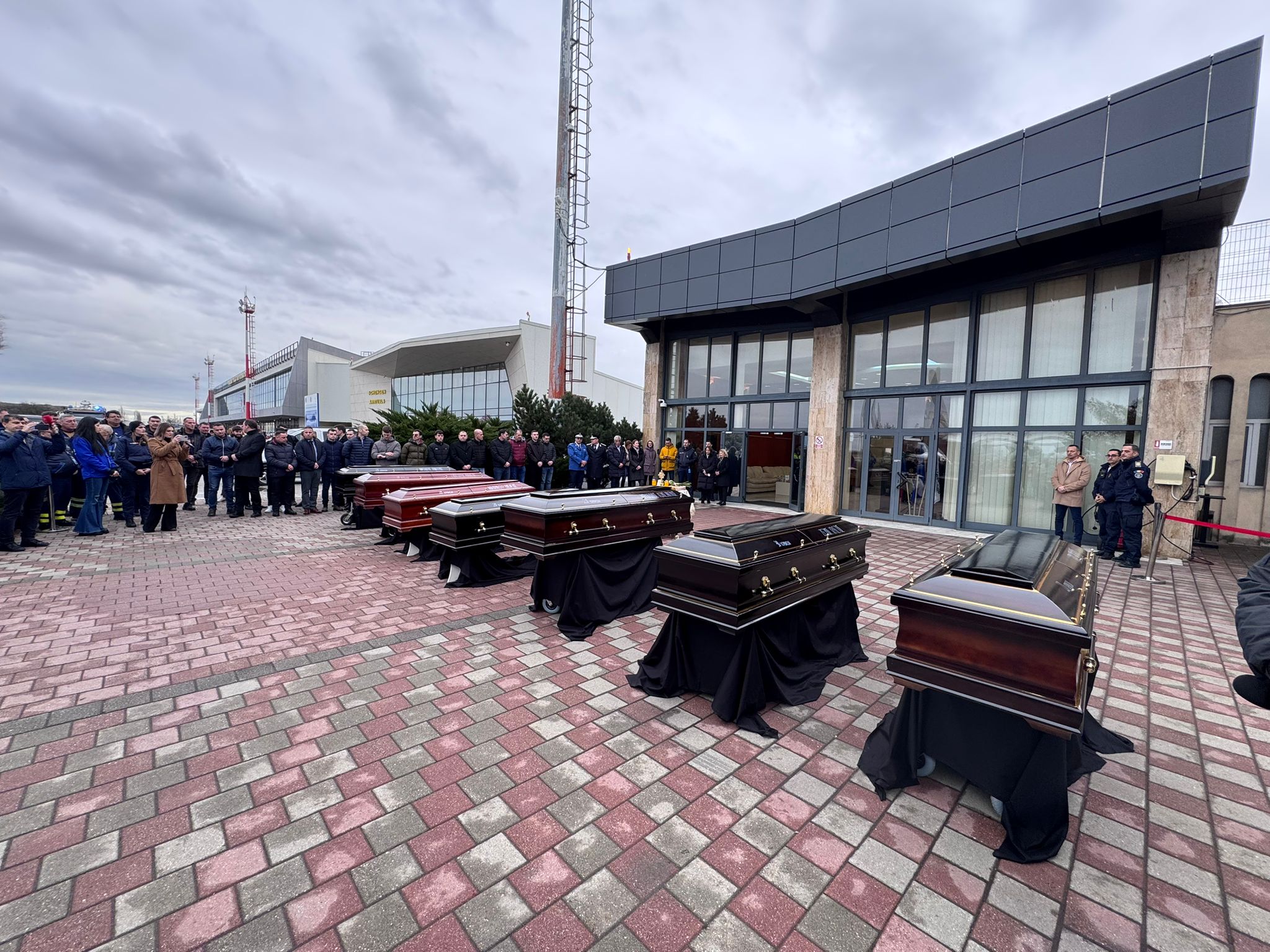 La aeroport a fost prezent și mitropolitul Banatului, ÎPS Ioan Selejan, care a săvârșit o slujbă religioasă emoționantă pentru sufletele celor șapte tineri morți. La eveniment au participat rude ale acestora, precum și oficialități.