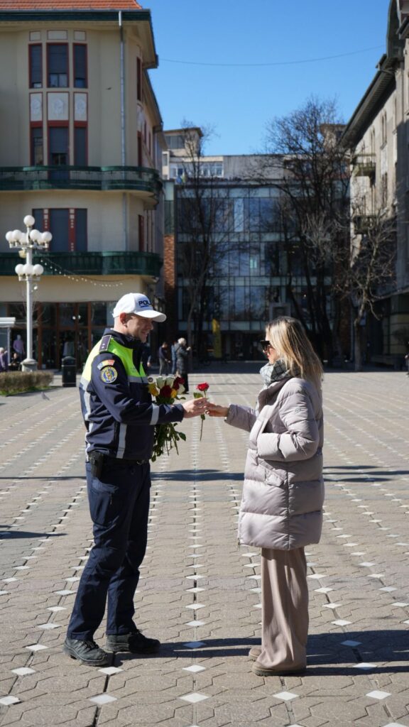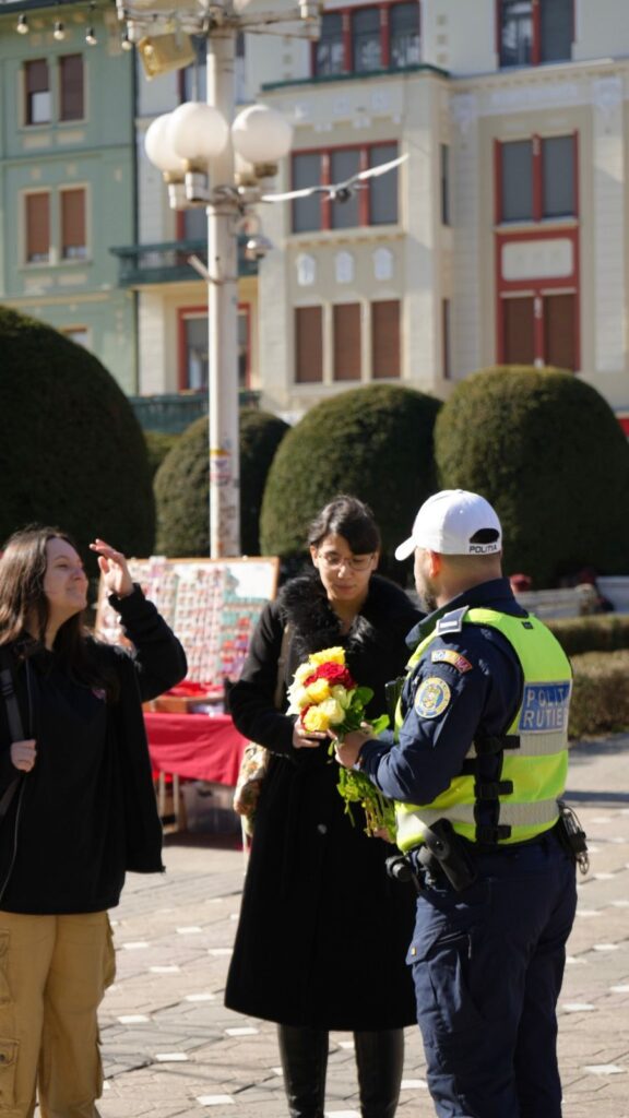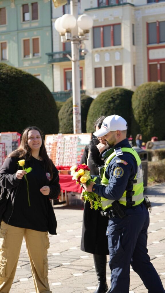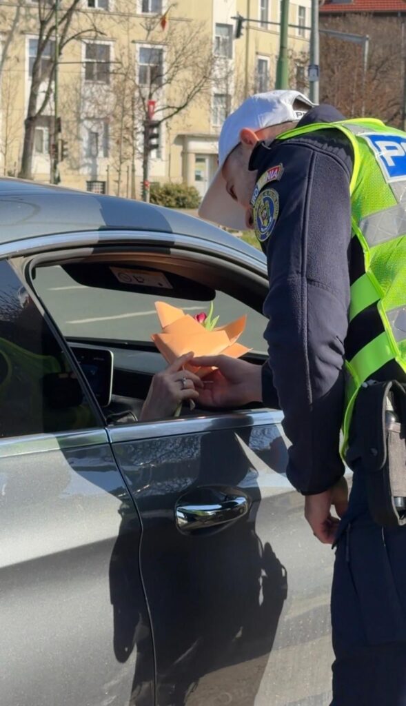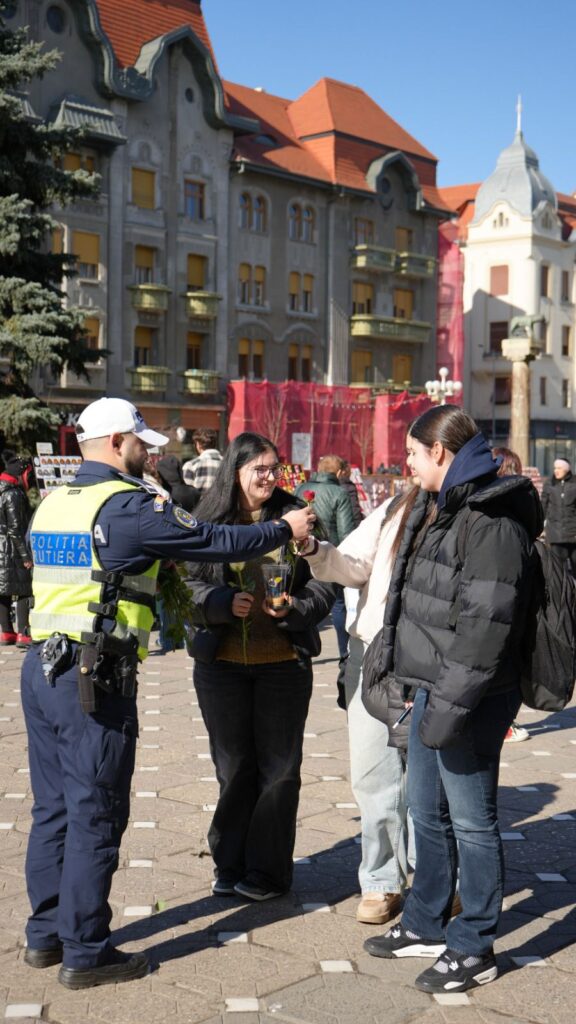 Acțiunea s-a desfășurat atât în trafic, cât și în zona centrală a municipiului Timișoara, unde doamnele și domnișoarele au fost oprite nu pentru verificări, ci pentru a primi un mic simbol al primăverii. Alături de partenerii instituționali, polițiștii au oferit mărțișoare tradiționale și flori, într-un gest menit să aducă zâmbete și să consolideze relația dintre comunitate și oamenii legii.