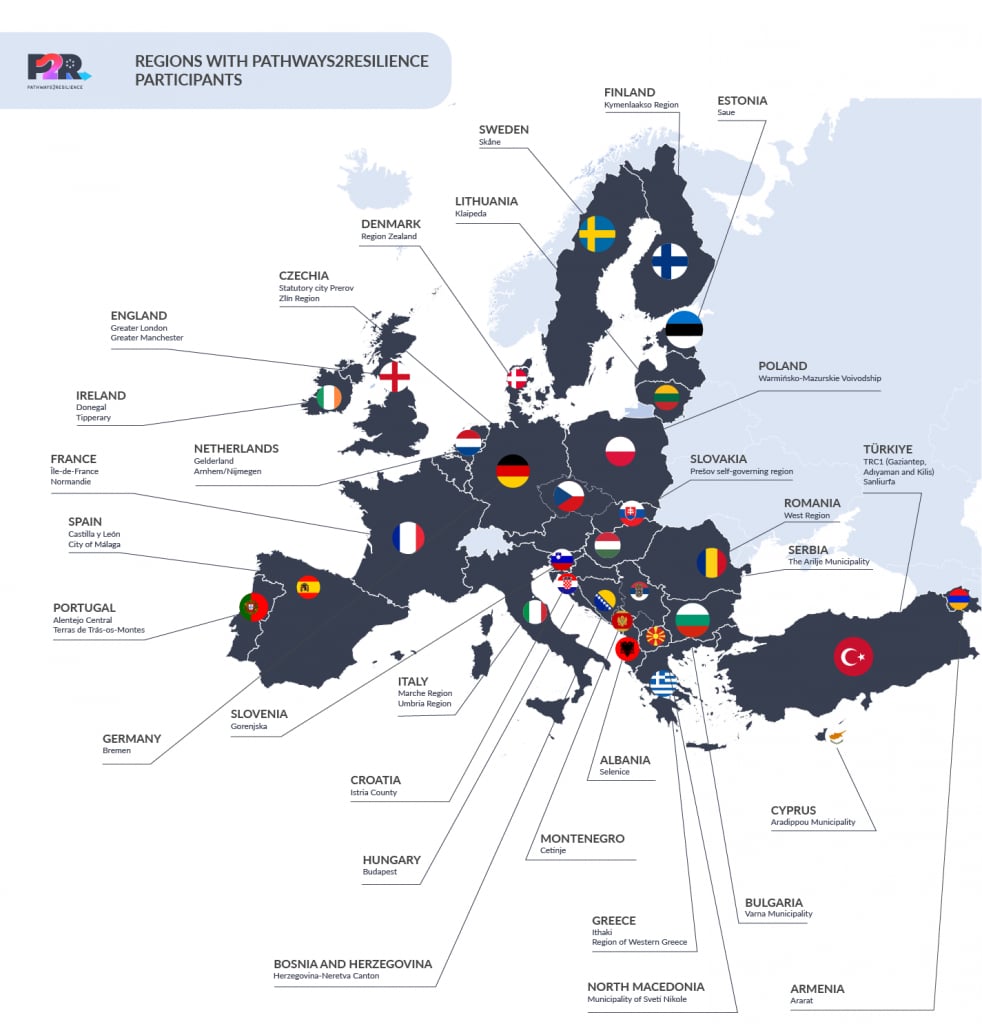 Cele 40 de comunități și regiuni vor lucra cu partenerii de proiect pentru a întocmi nu doar o strategie de rezistență la schimbările climatice, ci și un plan de acțiune și un plan de investiții în acest sens. Experții Pathways2Resilience vor sprijini regiunile cu îndrumări tehnice, pas cu pas, într-un mod de lucru care presupune o adaptare transformativă – în Călătoria spre Reziliență Regională. Aceasta va include activități de consolidare a capacităților, oportunități multiple de învățare, schimb de cunoștințe și acces la un set cuprinzător de instrumente pentru rezistența la schimbările climatice. Reprezentanții celor 40 de regiuni selectate și partenerii de la Pathways2Resilience vor avea, în luna octombrie, o primă reuniune, la Haga, pentru a da startul activităților.