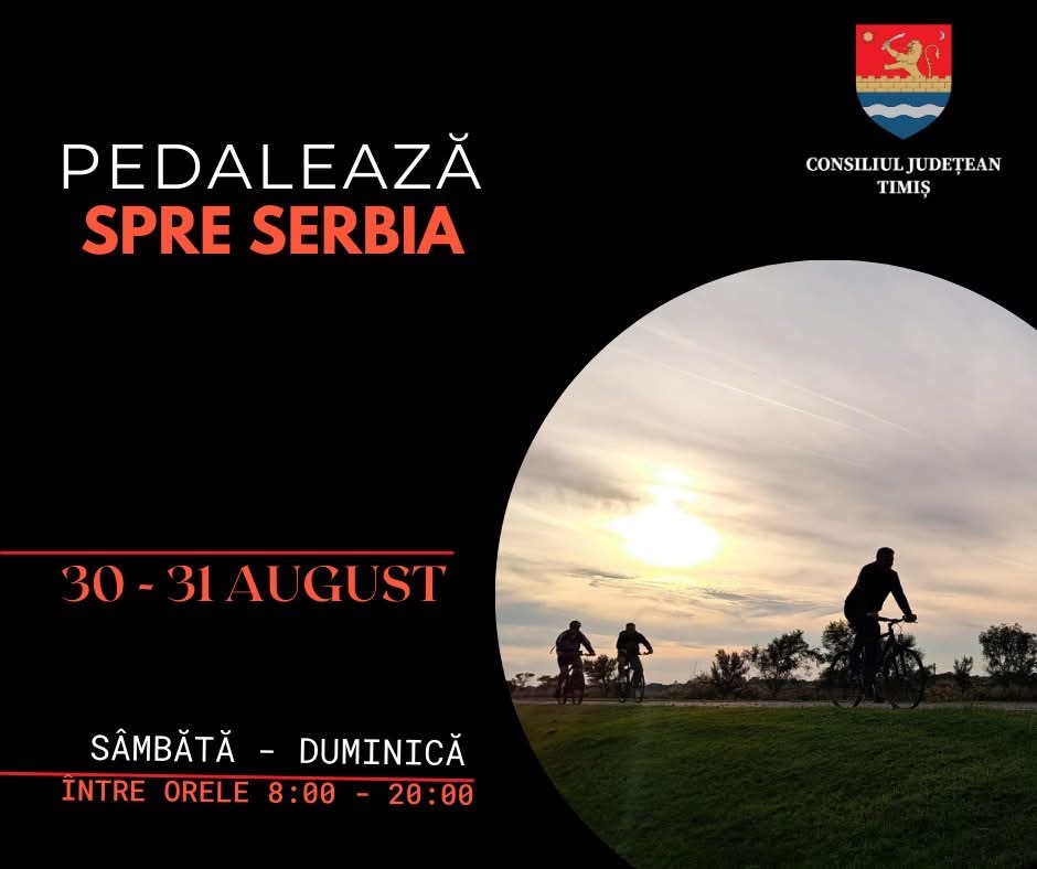 În weekendul 30–31 august 2025, frontiera româno-sârbă de pe pista de biciclete Timișoara – Zrenjanin va fi deschisă pentru cicliști, între orele 08:00 și 20:00.