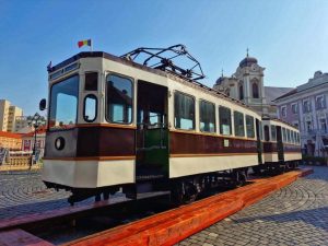 Două vagoane de tramvai cu dublă comandă F2 fabricate în 1927, expuse cu mândrie...