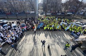 Numeroși polițiști au protestat, luni, în fața Prefecturii Timiș. Aceștia sunt nemulțumiți de reducerea...